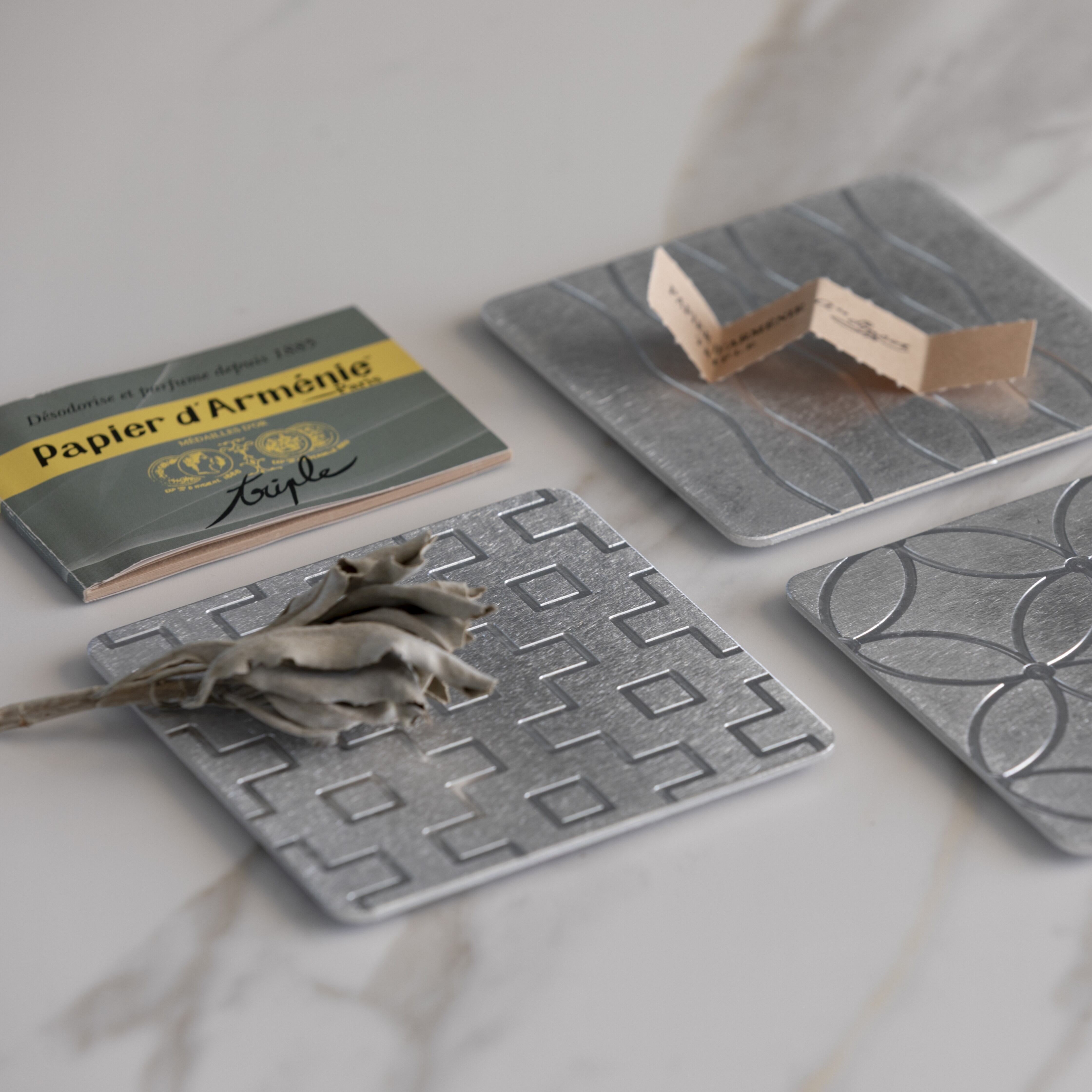 折敷をイメージして、コースターやテーブルウエアとしても使えるほか、お香立てにも。
